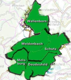 Woher kommt der Name "Hinterbüsch"![]() Nach meinen Recherchen ist der Name bereits um die Wende des 18.-19.Jahrhunderts entstanden, man geht davon aus, dass die Dauner Leute, vielleicht auch die Behörden(!) etwas 3.rangig von unseren Dörfern gesprochen haben, wie z.B.: "hinter dem Büsch" oder "Busch", in Gedanken, da kann nicht viel los sein das liegt ja hinter dem Wald. Ursprünglich waren eigentlich hauptsächlich die Dörfer Deudesfeld, Meisburg und Weidenbach gemeint, während wir dann in unserer Kooperation in Bezug auf Fremdenverkehrswerbung die Orte Wallenborn und Schutz dazu genommen haben, daher auch die Wanderkarte "Hinterbüsch". Dieses Wort ist inzwischen für unsere Gegend zum festen Bestandteil geworden und soll auch diesen Platz immer behalten. Was Anfang des 19.Jahrhunderts einmal NEGATIV beschieden wurde, ist längst zu einem Markenzeichen für unsere fünf Dörfer geworden. gez. Günter Bill Hinterbüsch heute![]() Die Gemeinden Deudesfeld, Meisburg, Schutz, Wallenborn und Weidenbach, bilden mit einer gesamt Fläche von 4308 ha die Region Hinterbüsch. Diese wiederum liegt im Herzen der Vulkaneifel unmittelbar am Maar mit dem größten Maarkessel der Westeifel, dem "Meerfelder Maar", und in der Nähe des einzigen Bergkratersees nördlich der Alpen, dem "Mosenberg" mit seinem "Windsborn"-Kratersee. Alle fünf Gemeinden gehören zur Verbandsgemeinde Daun, und somit zum Landkreis Daun. Unmittelbar grenzt der Hinterbuesch an die Landkreise Bitburg-Prüm, Bernkastel-Wittlich, sowie an die Verbandsgemeinde Gerolstein. Einige Biketouren werden Dich auch in die benachbarten Gebiete, und selbstverständlich zu den schönsten Punkten unserer Region führen. Der Hinterbüsch besteht, so wie der Name es schon ausdrückt, aus großflächigem zusammenhängendem Waldgebiet, aufgelockert durch Wiesen und Felder, sowie feine Täler mit ursprünglichen Bach und Flussläufen. Die Einwohnerzahl im Hinterbüsch liegt bei derzeit ca. 1900 Personen. |
